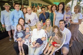 Mrs O’Shaughnessy with her 10 children and their families at Brighton Bowling Club.Credit:Wayne Taylor