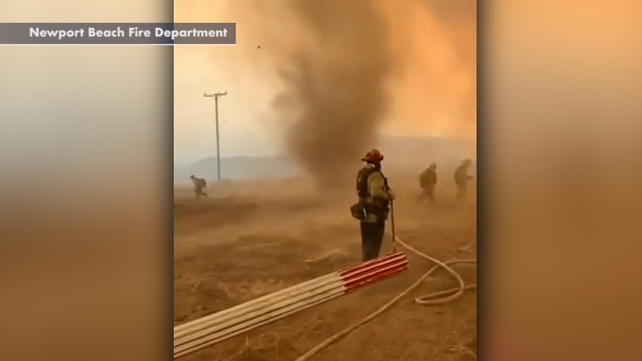The Newport Beach Fire Department shared a video on Instagram of a rapidly spinning smoke dust devil as the blaze continues to rage.
