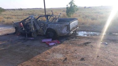 The aftermath of a drone attack near Iraq’s border with Syria.Credit:AP