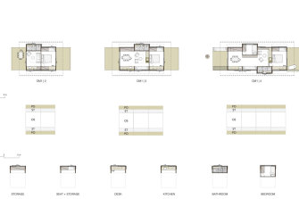 Rather than expecting buyers to adapt to a set design, Martin, Stutchbury and De Achaval have developed a prefabricated house with skylights that, like the house, can be rotated 360 degrees to suit a site. Windows and doors can be switched around. Walls can be removed because of a portal frame which means they aren’t load bearing.
