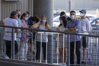 Testing queues at The Alfred hospital on New Year’s Eve.Credit:Wayne Taylor