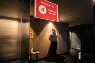 A resident support officer at the Four Points by Sheraton on Wednesday.Credit:Jason South