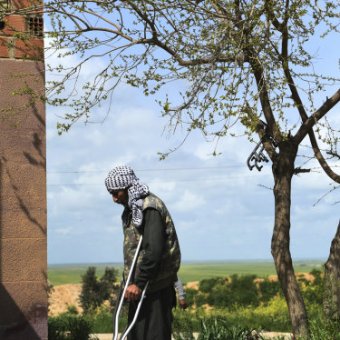 Syrian Democratic Forces soldier Khalid Mustafa, 43, at a house in Hassaka where militiamen are recuperating from their injuries. Credit:Kate Geraghty