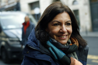 Paris mayor Anne Hidalgo gives a press conference ahead of squaring off against Cedric Villani at the March 15 poll. Credit:AP